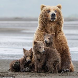 This family of coastal brown bears lived up to their name as they enjoyed a day out together at the beach. Photographer Jennifer Hadley captured the mother bear and her…