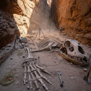 A remote desert canyon has erupted into the center of worldwide attention after researchers documented the colossal remains of what appears to be an ancient, previously unknown creature. The excavation…