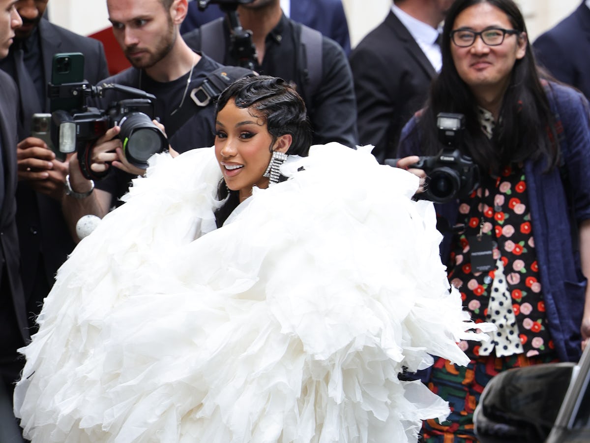It is Haute Couture Fashion Week in Paris and Cardi B ensured she got the style memo. The rapper, 30, made a bold statement as she left her hotel in a dramatic white ruffle tulle cape to head to the Balenciaga show in the city on Wednesday.