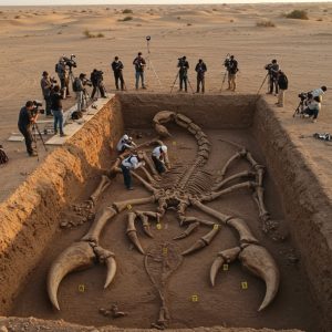 In a breathtaking revelation straight out of a sci-fi thriller, archaeologists have uncovered the fossilized remains of a colossal scorpion deep within the sun-scorched sands of an ancient desert. Measuring…