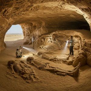 In an extraordinary archaeological revelation, researchers in Egypt have reportedly unearthed a 5,000-year-old tomb containing two colossal human-like skeletons, each measuring an astonishing 30 feet in height. This discovery,…