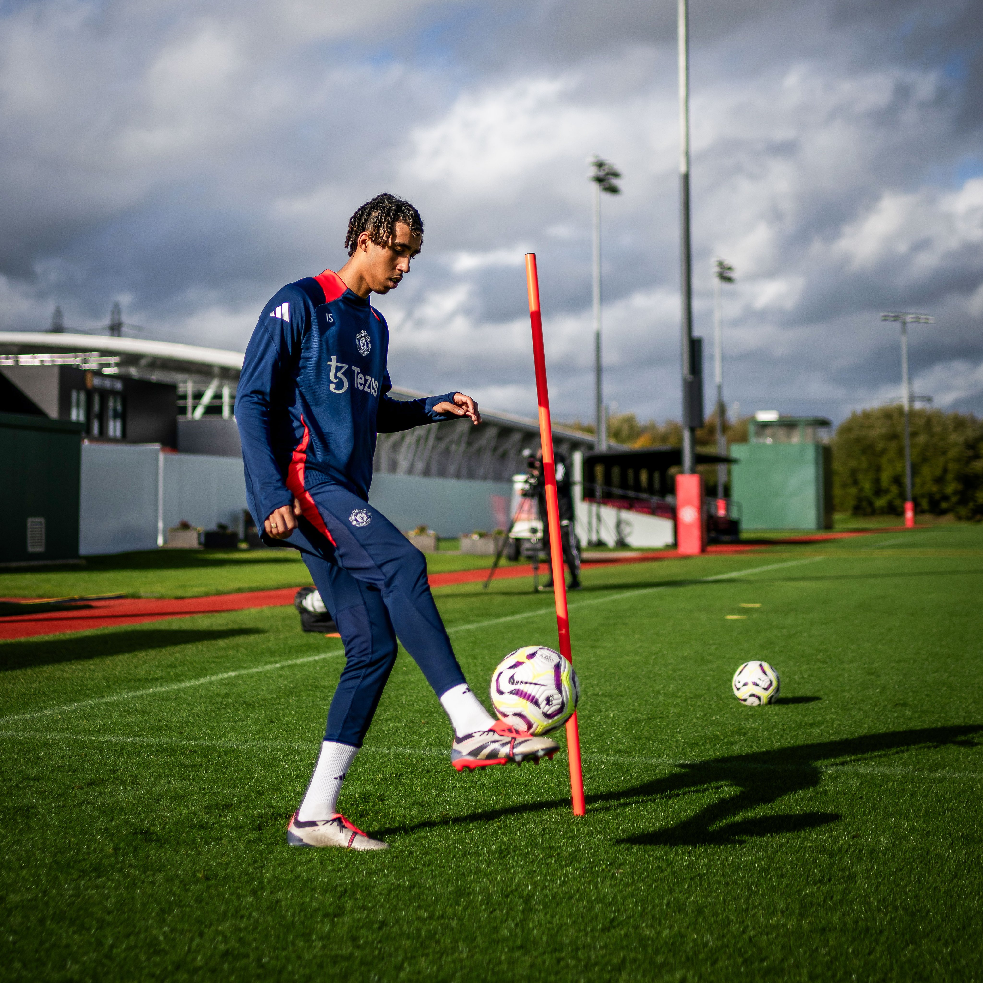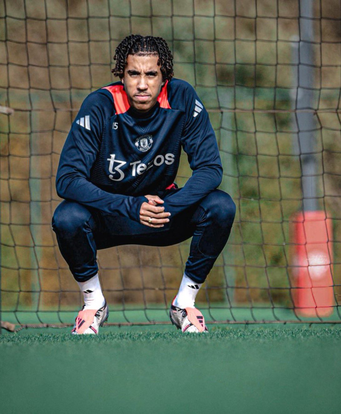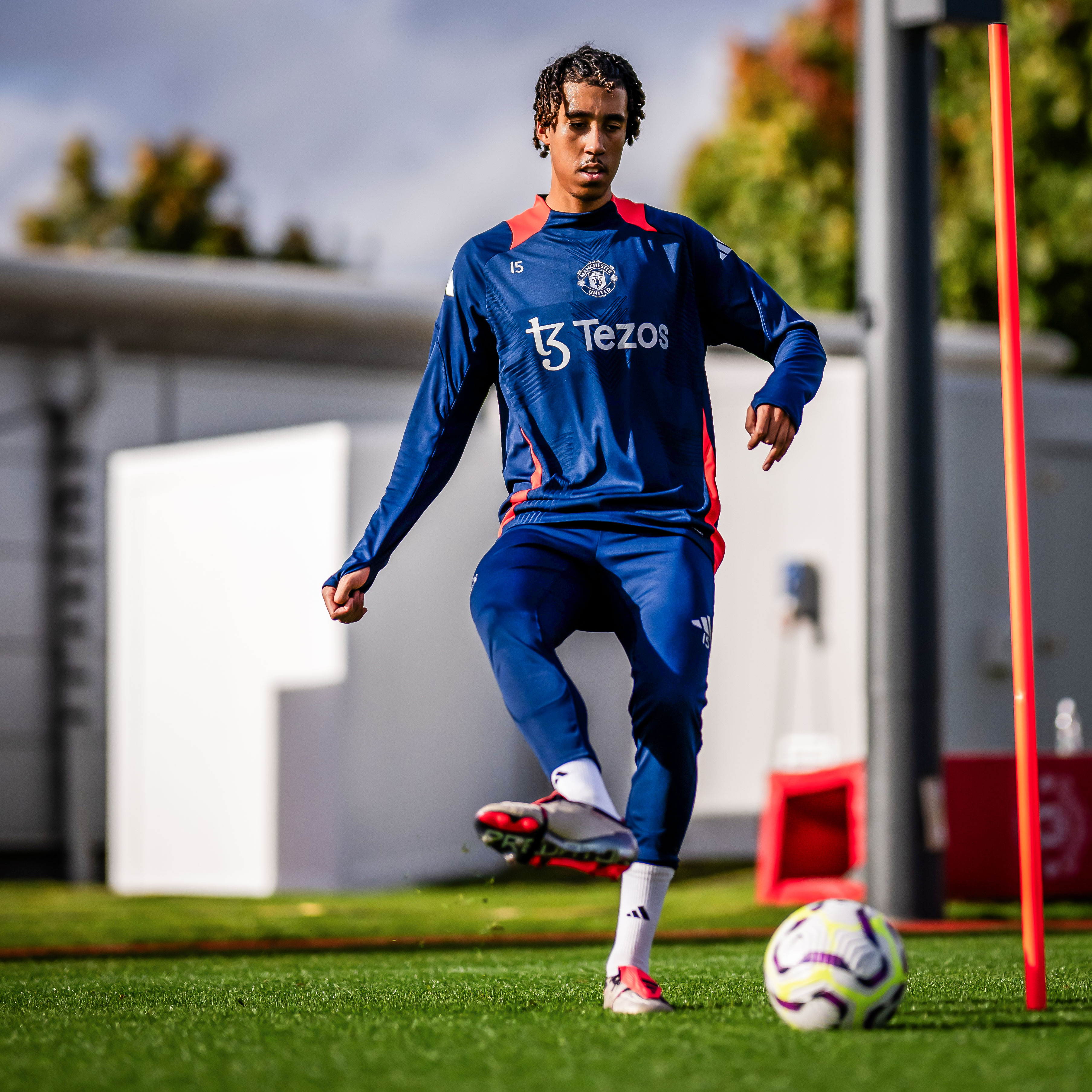 MANCHESTER, ENGLAND – OCTOBER 17: (EXCLUSIVE COVERAGE) Leny Yoro of Manchester United in action during a first team training session at Carrington Training Ground on October 17, 2024 in Manchester, England. (Photo by Ash Donelon/Manchester United via Getty Images)