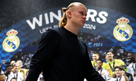 Erling Haaland arrives. Photograph: Florencia Tan Jun/Uefa/Getty Images