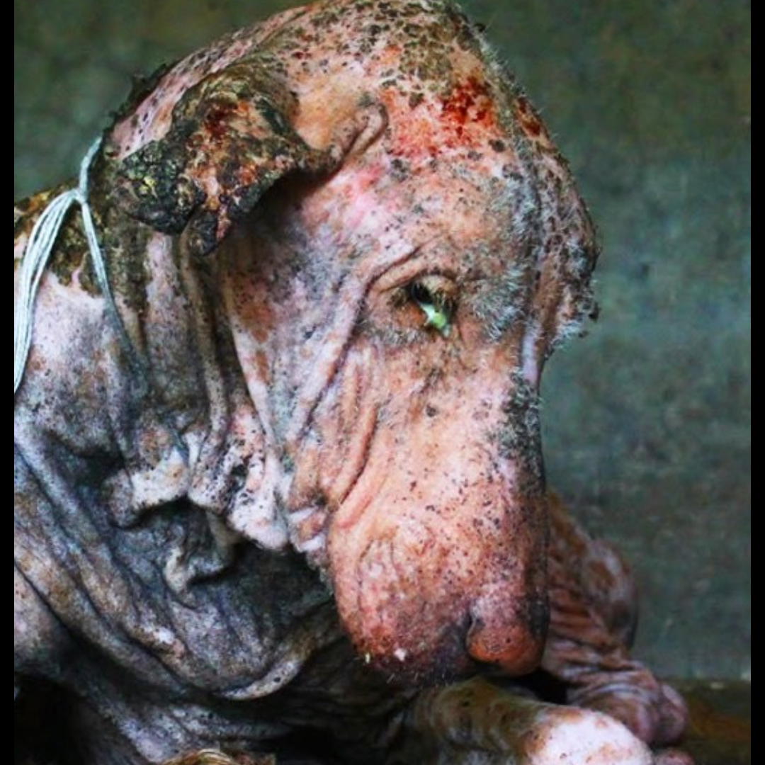Lo trajeron al refugio, pero era más que evidente que este perro había perdido toda esperanza. El no haría nada más que quedarse en una esquina de su celda, se colocaba en posición fetal mientras veía la pared. Su espalda era un testimonio de todo lo que había sufrido, un terrible lienzo de heridas e infecciones.